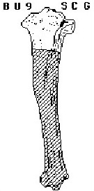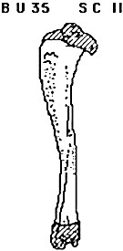 Unit is the opposite of BU 5 and BU 6. The element is essentially complete except for a missing section of the posterior shaft characterized by muscle scar on the bone surface. The nutrient foramen may or may not be present. (WU)