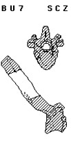 Unit consists of a portion of the anterior section of the centrum, with an adjoining anterior section of the spinous process. One or both anterior articulating facets may also be present. This unit is the anterior opposite of BU 28. (WU)