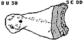 Element with medial half of proximal head missing. Opposite of BU 8. (DS)